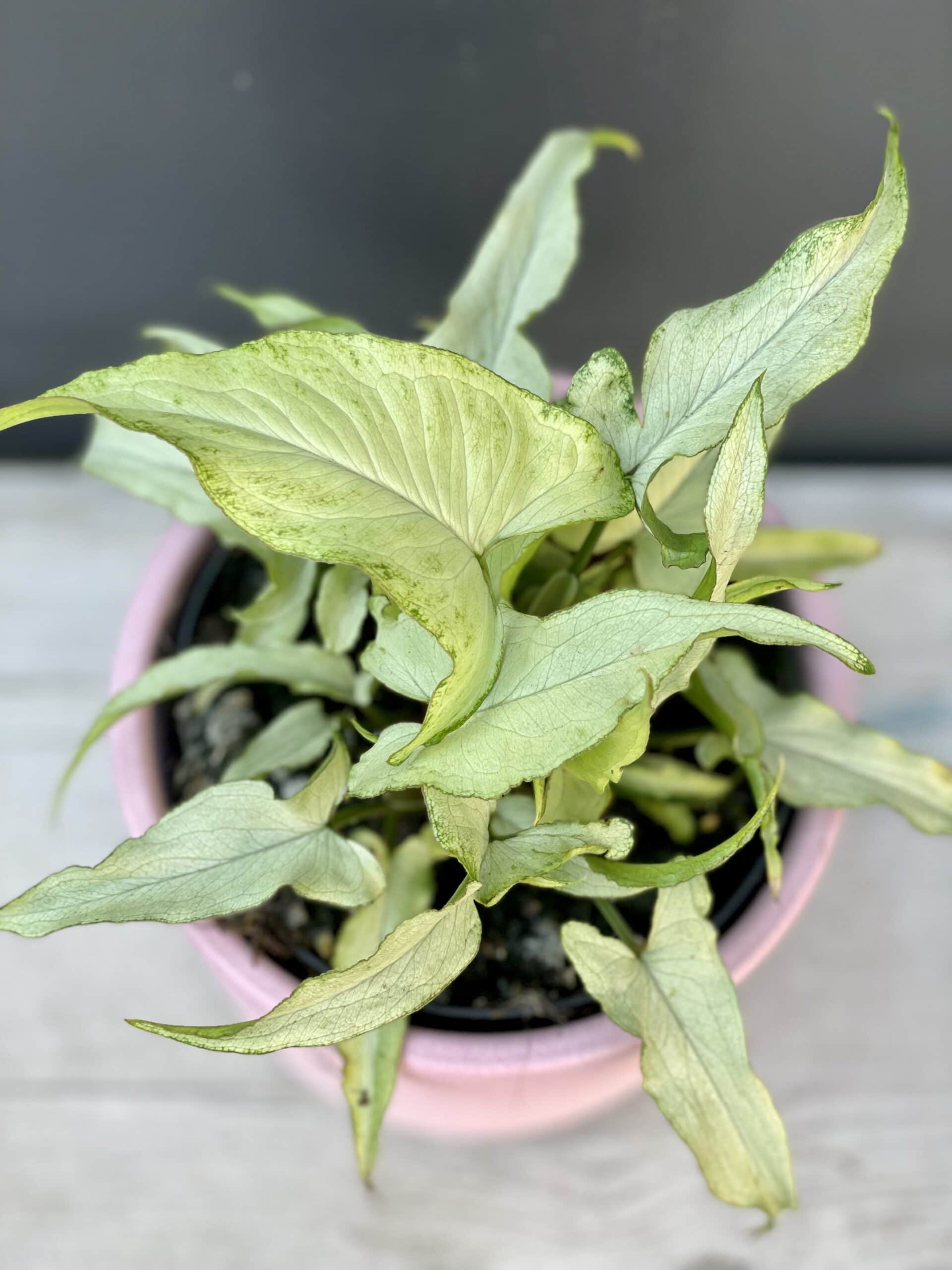 Na co trzeba uważać?: Syngonium jest podatne na przędziorki i wciornastki. Regularnie przeglądajmy liście rośliny i utrzymujmy podwyższoną wilgotność powietrza.