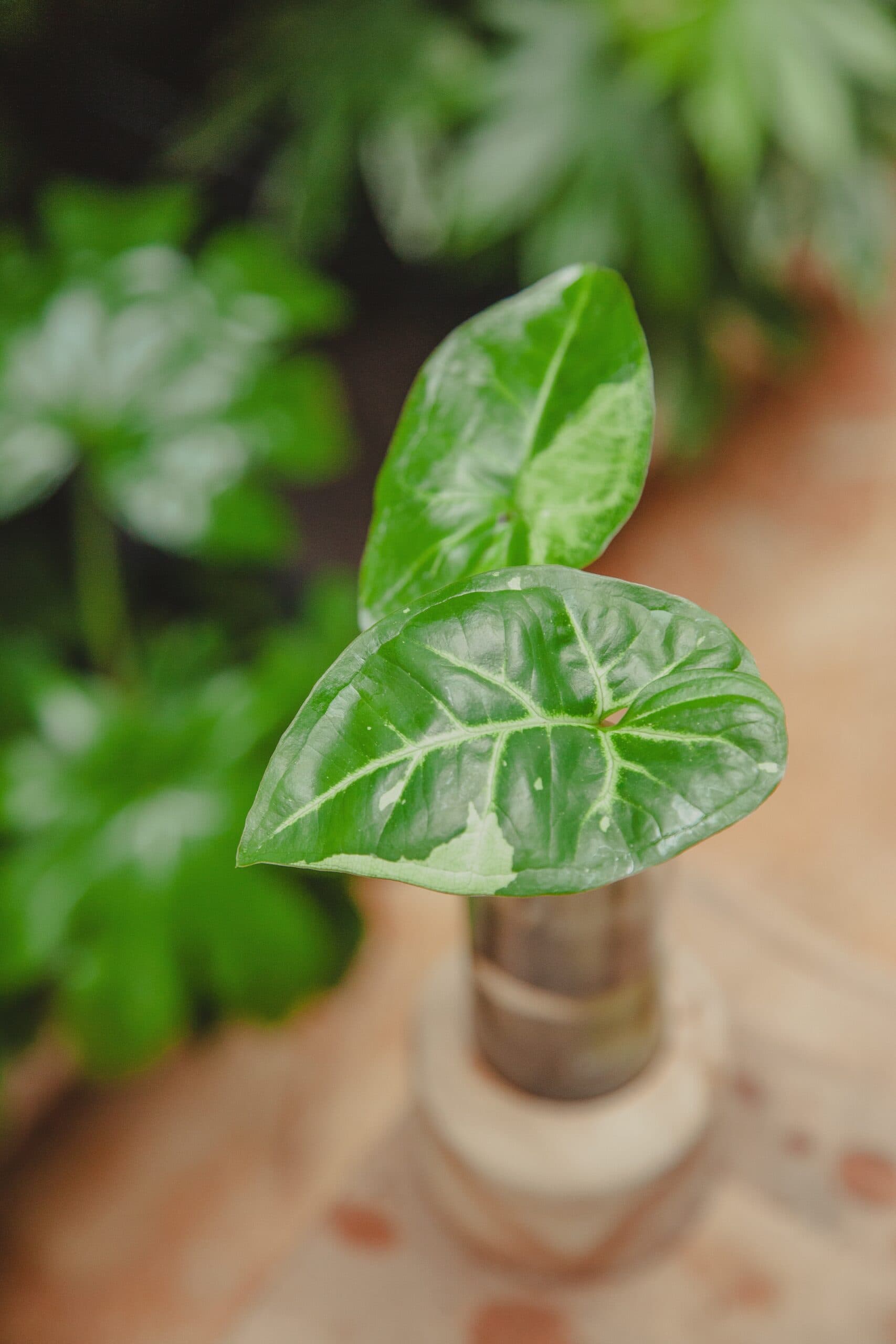 Sadzonka kolekcjonerskiego syngonium Panda do samodzielnego ukorzenienia. Bez problemu ukorzeni się w wodzie z dodatkiem węgla aktywowanego!