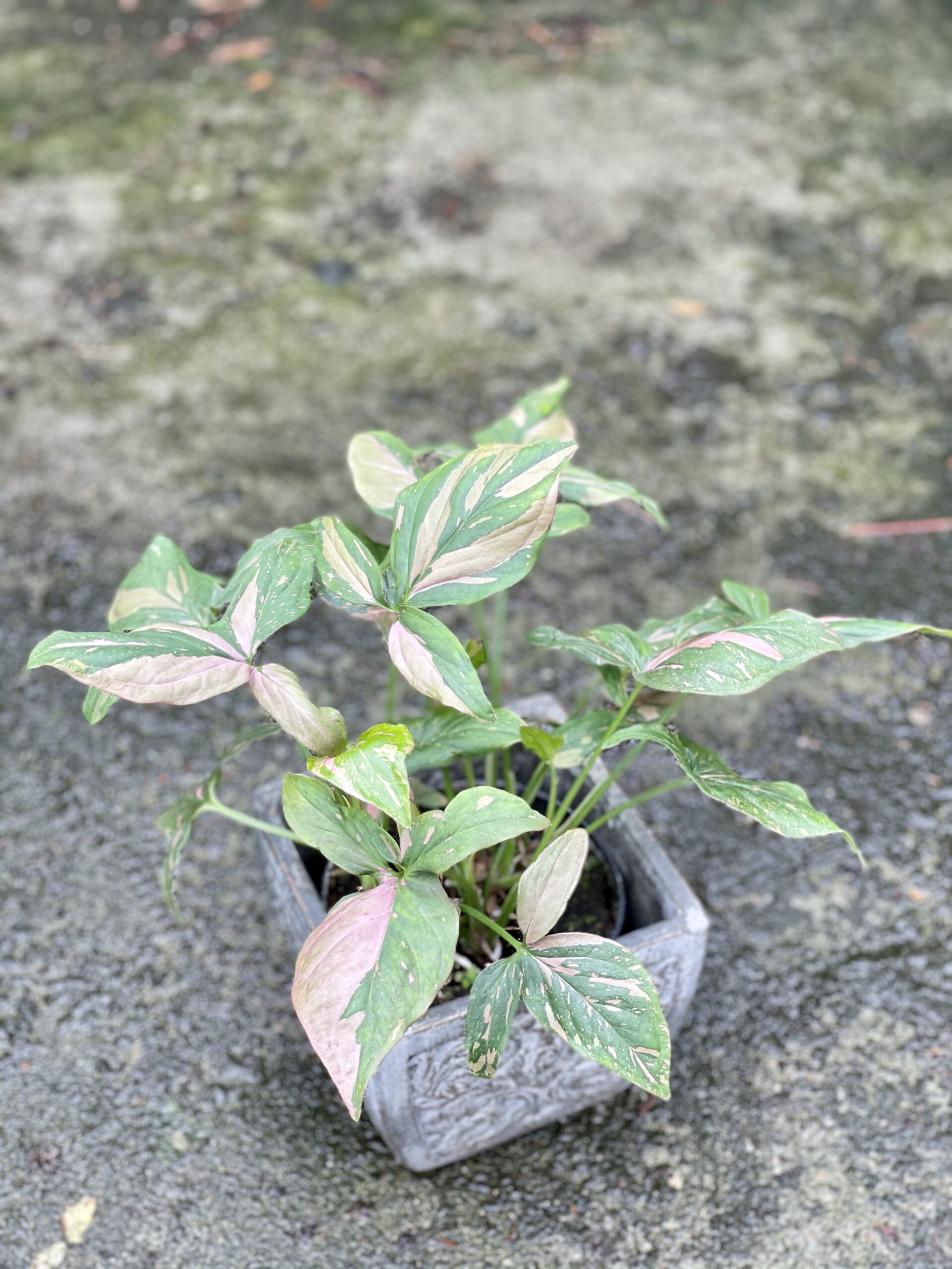 Wyjątkowa, bardzo poszukiwana odmiana, znana również jako Syngonium Red Spot. Soczyście zielone liście syngonium Pink Splash nakrapiane są różowymi piegami – to właśnie one tak cieszą oko!