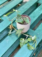 Widoczna na zdjęciu roślina: Syngonium Podophyllum Albo Variegata ma wysokość około 40 cm. Jej doniczka ma 12 cm średnicy oraz 11 cm wysokości.