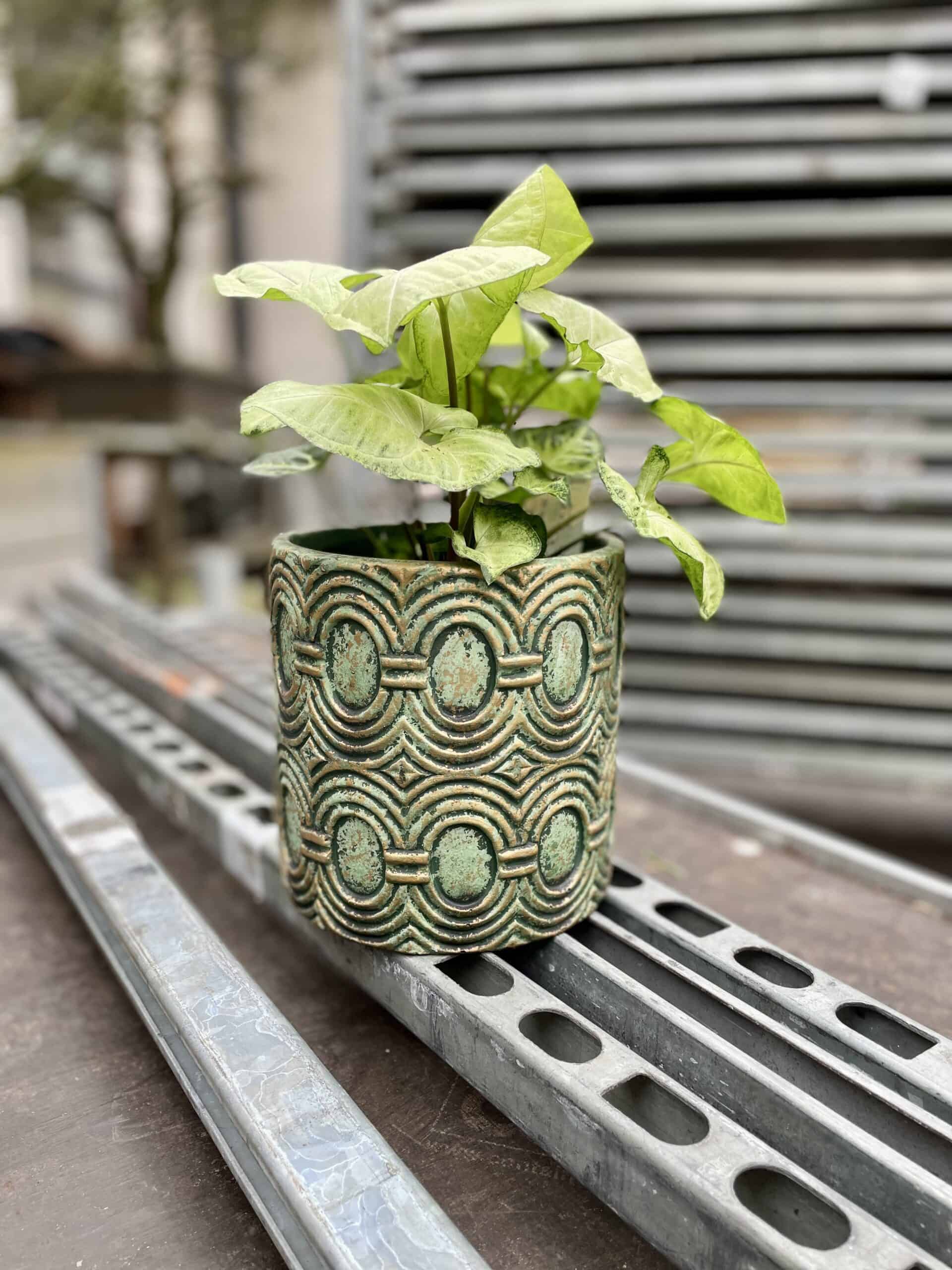 Widoczna na zdjęciu roślina: Syngonium White Butterfly ma wysokość około 25 cm. Jej doniczka ma 14 cm średnicy oraz 12 cm wysokości.