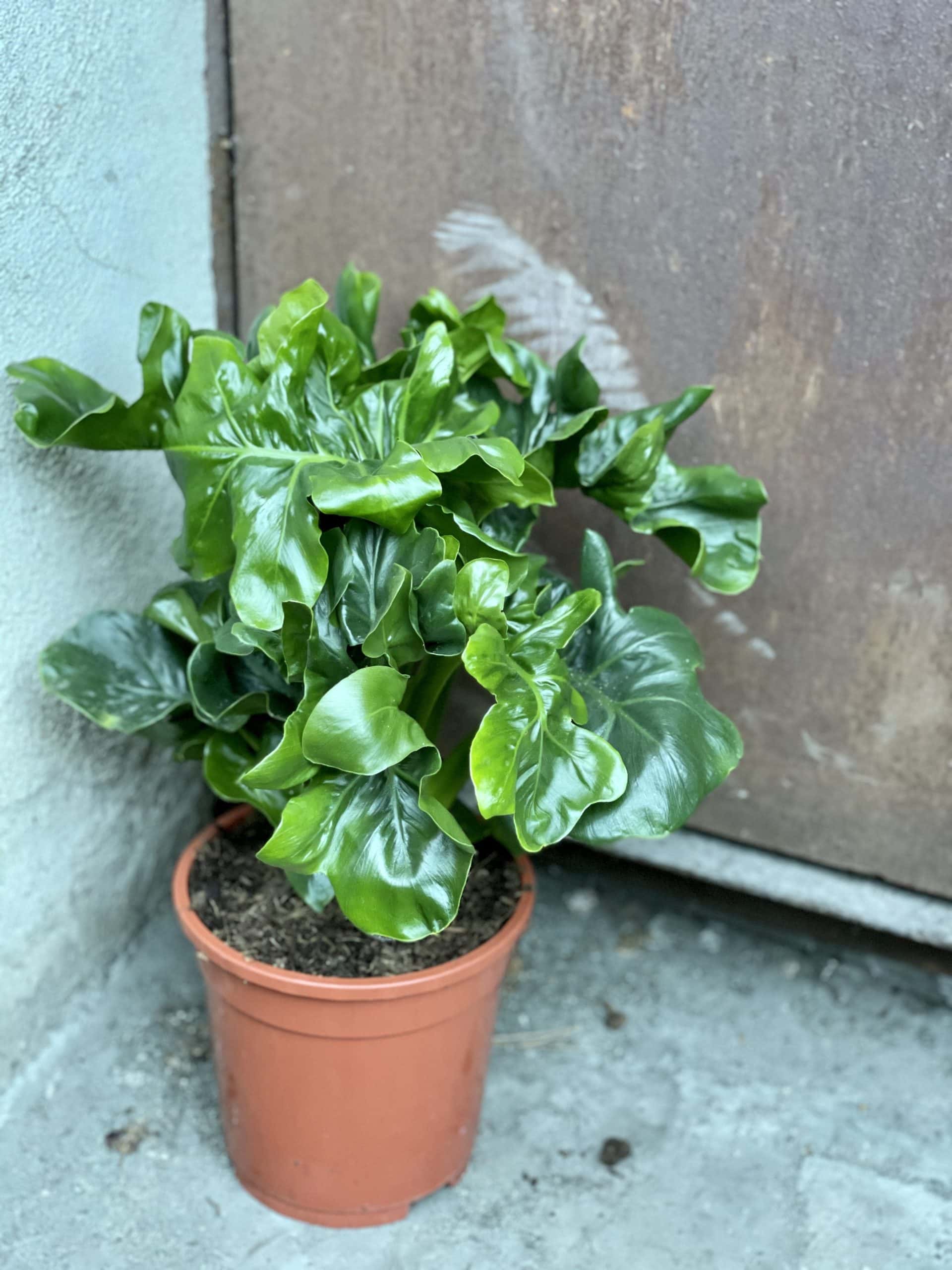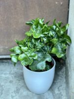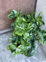Rośnie do około 40 cm i ma zwarty, kompaktowy pokrój. Na uwagę zasługują jego charakterystyczne, skórzaste, lśniące liście; marszczone, falbankowate i z jasnymi żyłkami. Poradzi sobie w półcieniu, byle ciepłym i wilgotnym lub w większej ilości rozproszonego światła.