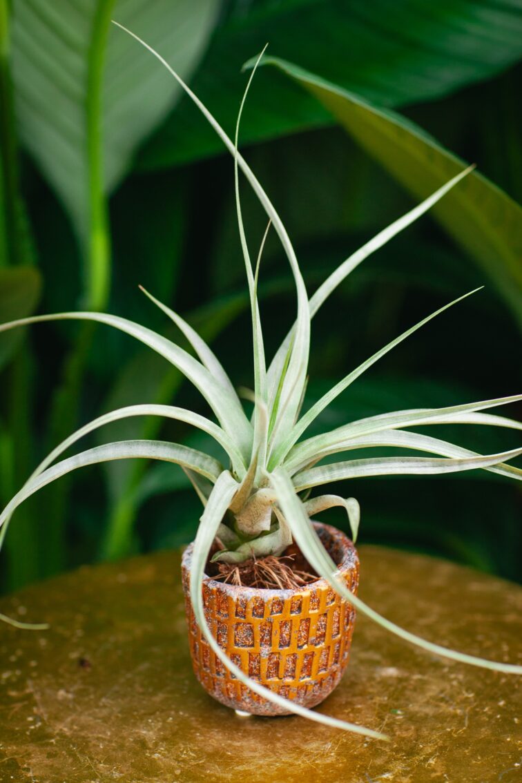 Tillandsia w pięknych, wijących się splotach? Czemu nie? Ma piękne, srebrzysto seledynowe barwy, żyje powietrzem i lubi od czasu do czasu wykąpać się w miseczce wody.