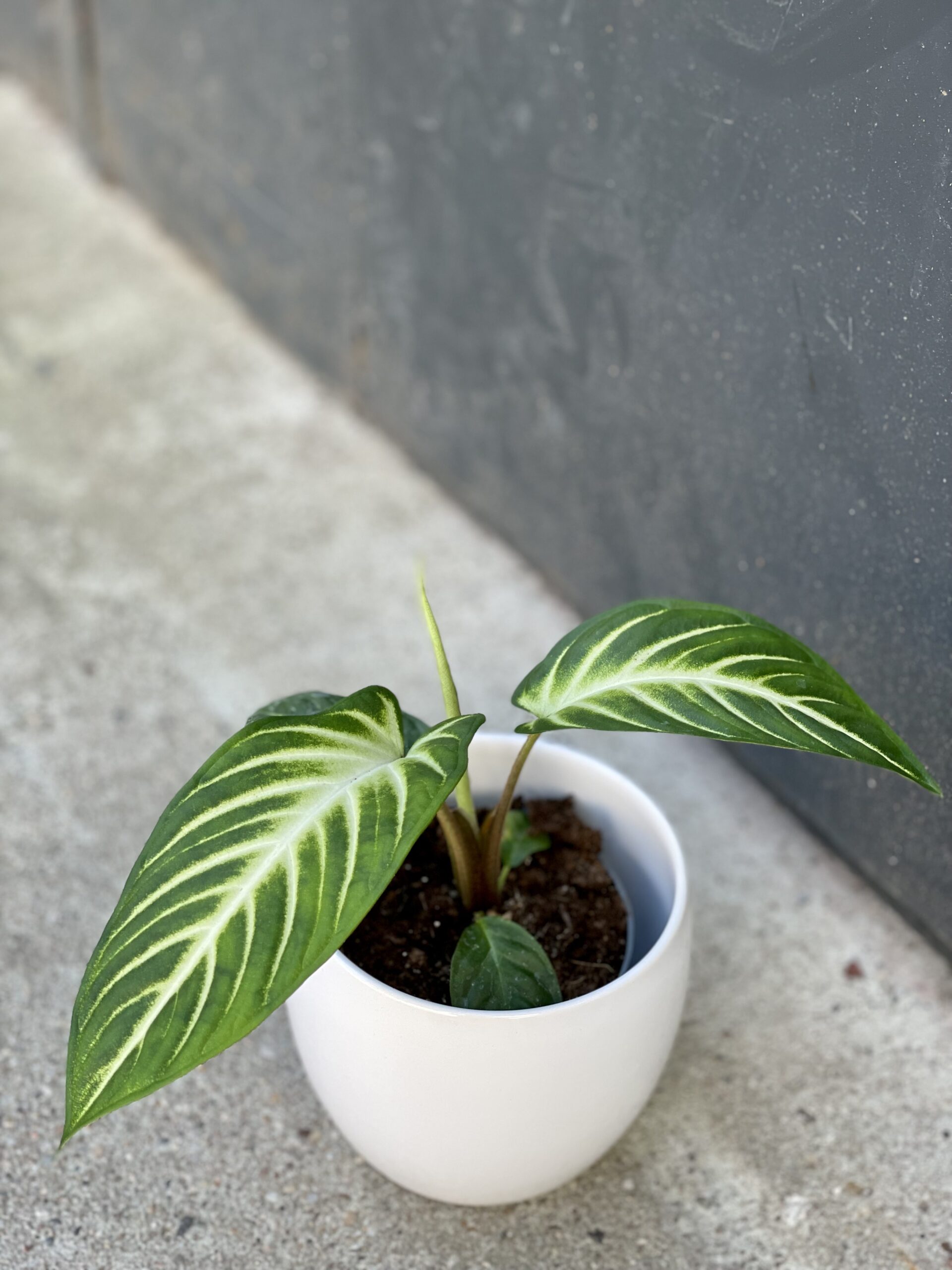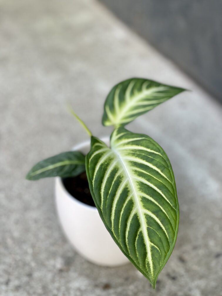 Xanthosoma Lindenii zwana też “anielskim skrzydłem” czy “skrzydłami anioła” ze względu na kształt liści i wspaniale rozkrzewiające się, świetliste, kremowe unerwienie. Spokrewniona z Caladium, ale nie potrzebuje “całkowitego usypiania” na zimę. Chociaż miłe jest to, że podobnie jak Alokazje czy Caladium – potrafi odrodzić się jak feniks z popiołu!