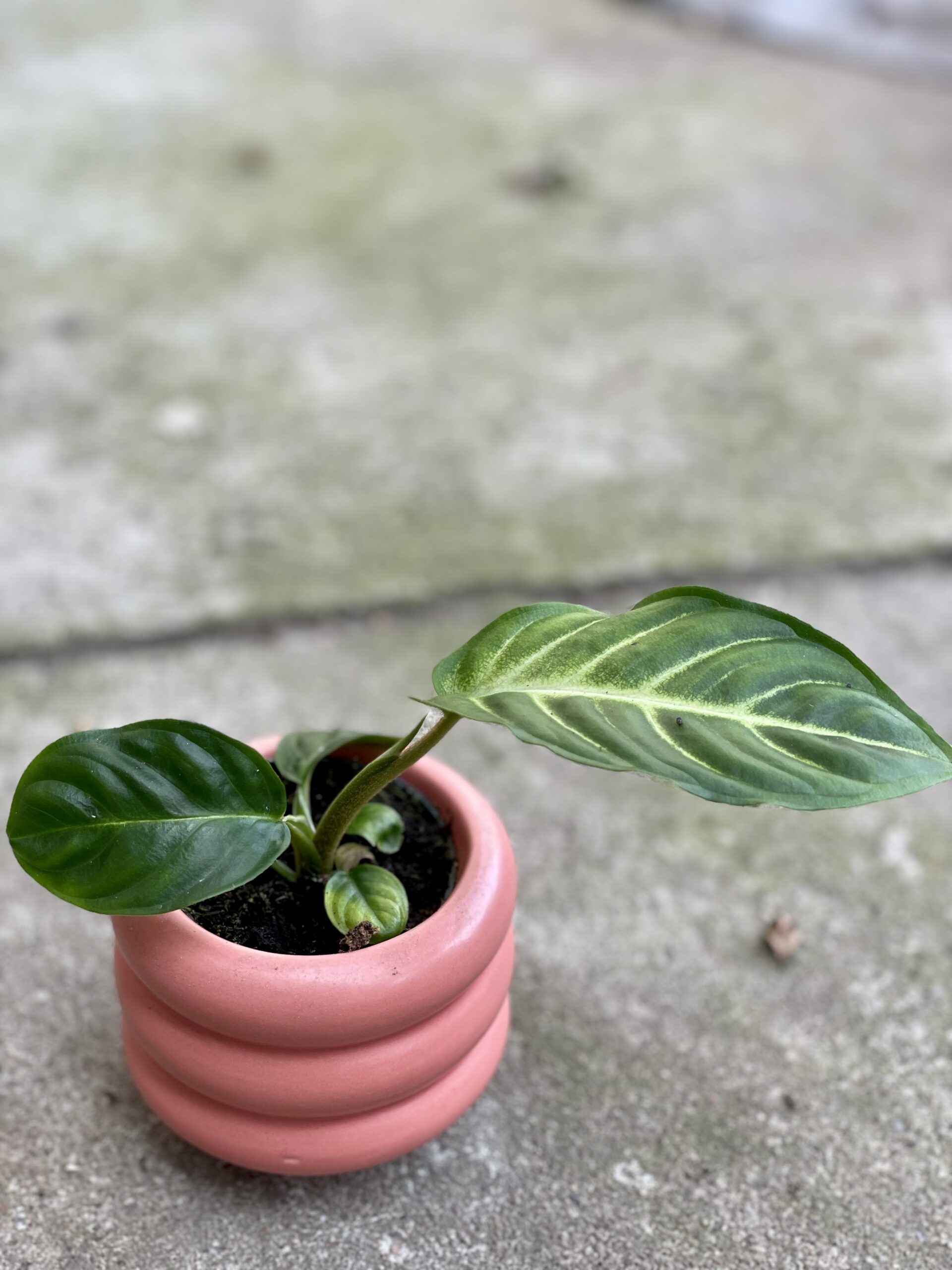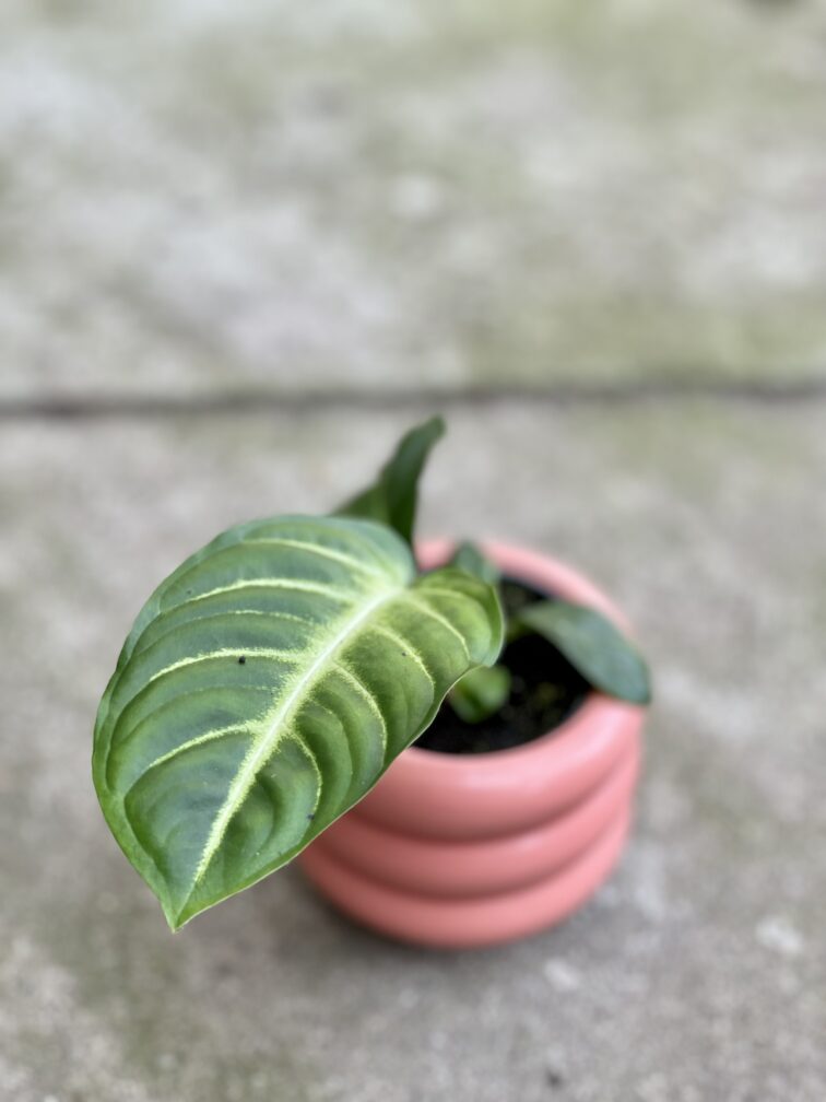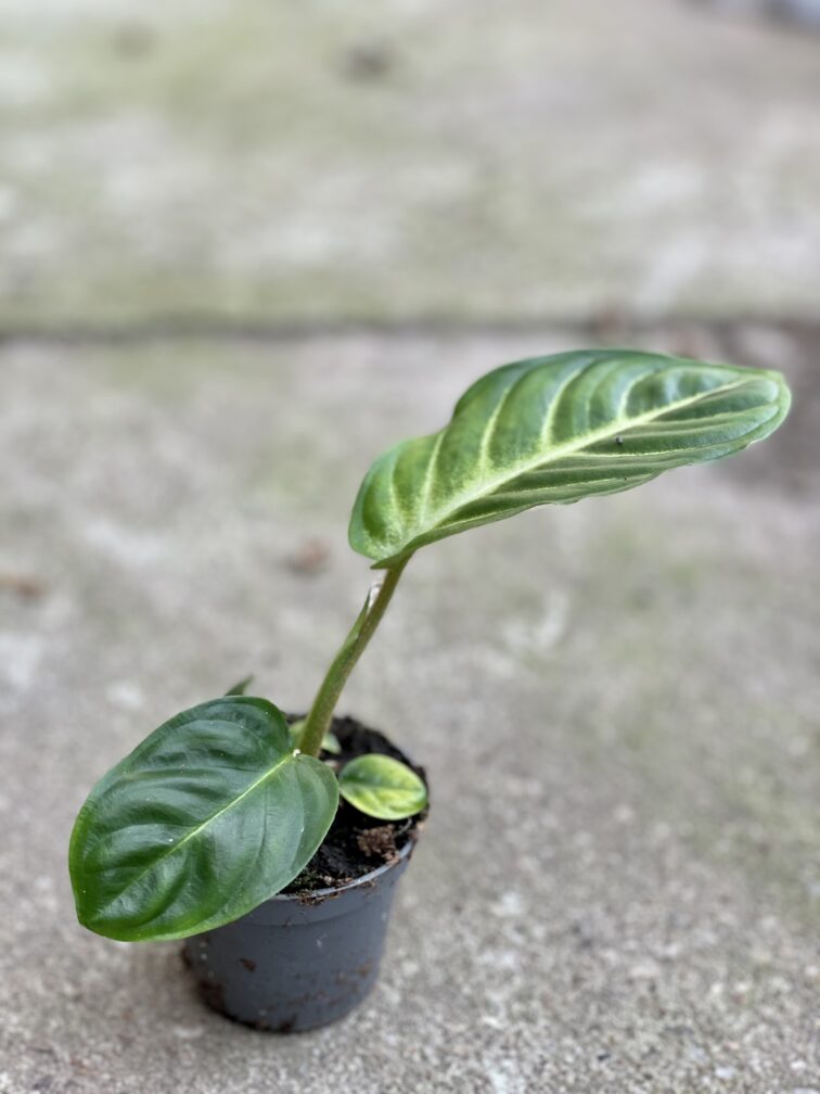 Xanthosoma Lindenii zwana też “anielskim skrzydłem” czy “skrzydłami anioła” ze względu na kształt liści i wspaniale rozkrzewiające się, świetliste, kremowe unerwienie. Spokrewniona z Caladium, ale nie potrzebuje “całkowitego usypiania” na zimę. Chociaż miłe jest to, że podobnie jak Alokazje czy Caladium – potrafi odrodzić się jak feniks z popiołu!
