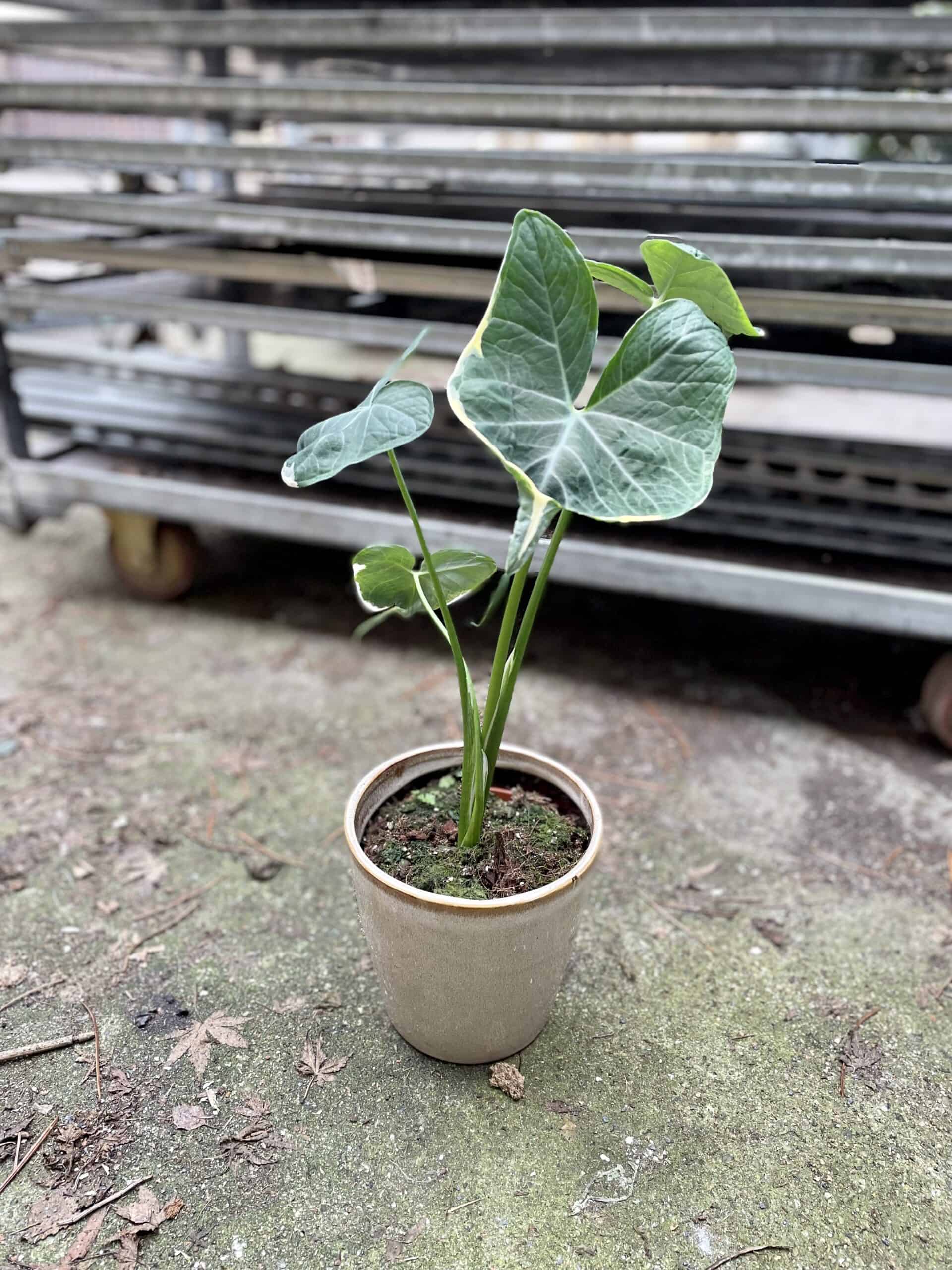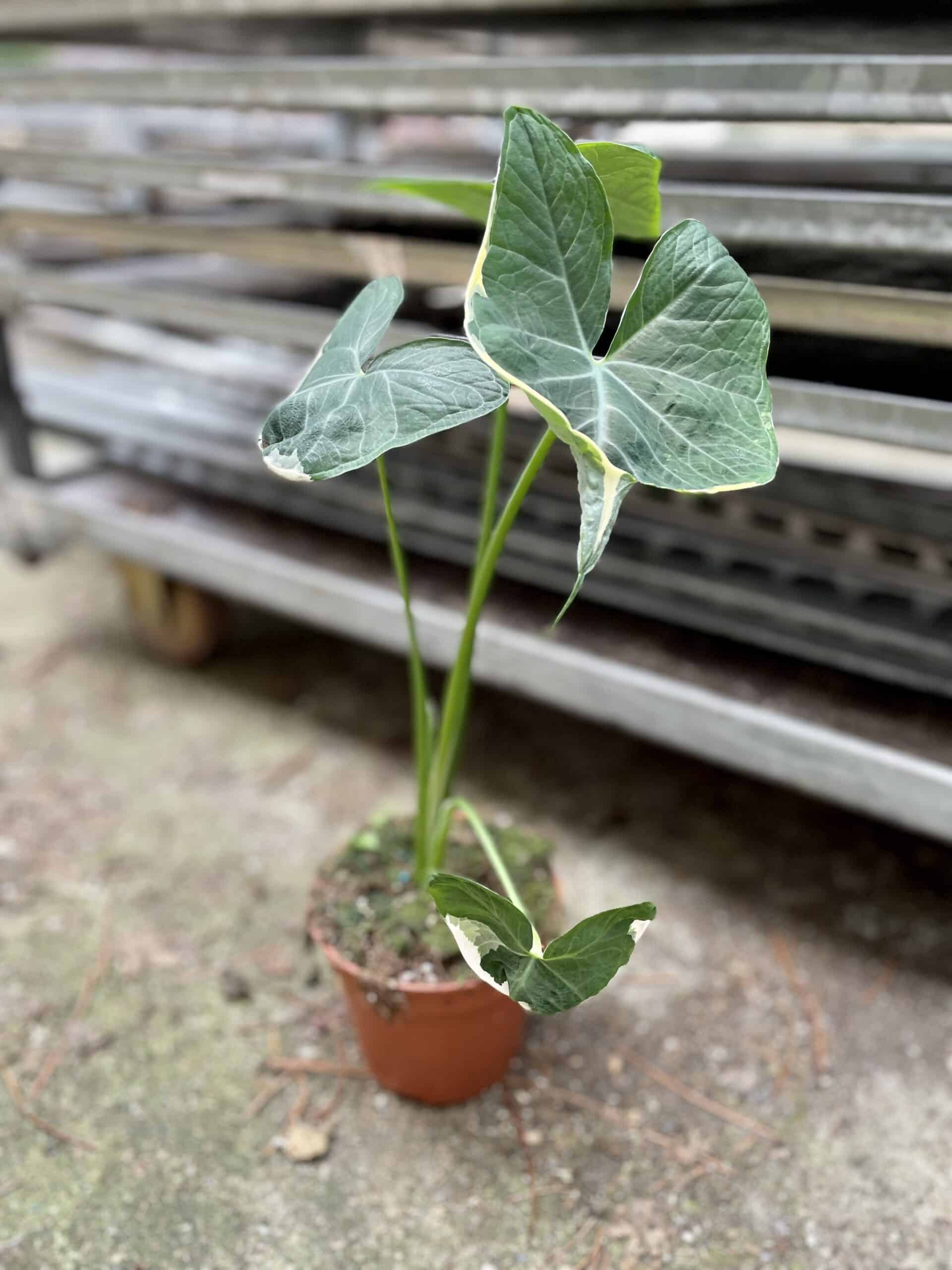 Bardzo unikalna odmiana Xanthosomy. Swą nazwę zawdzięcza urokliwym liściom, które nieco przypominają głowę słynnej, disneyowskiej Myszki z dużymi uszami. Xanthosoma Mickey Mouse to również posiadaczka malowniczych, nieregularnych wariegacji. Każdy nowy liść będzie niespodzianką, jeżeli chodzi o wybarwienie. Jak wszystkie wariegatki, Xanthosoma Mickey Mouse potrzebuje stanowiska z większą ilością rozproszonych promieni słonecznych, niż jej klasycznie zielone kuzynki.