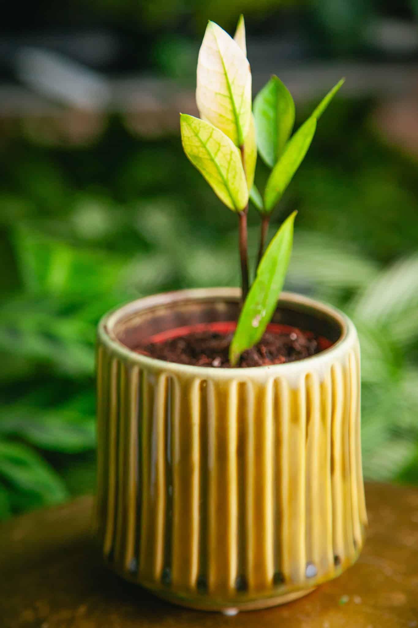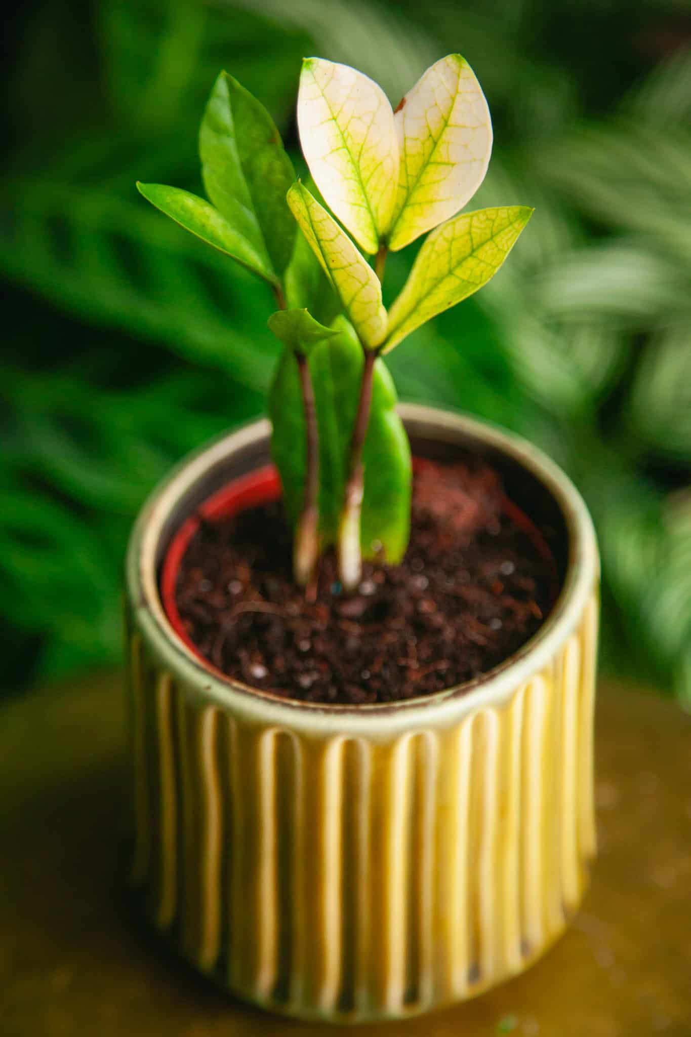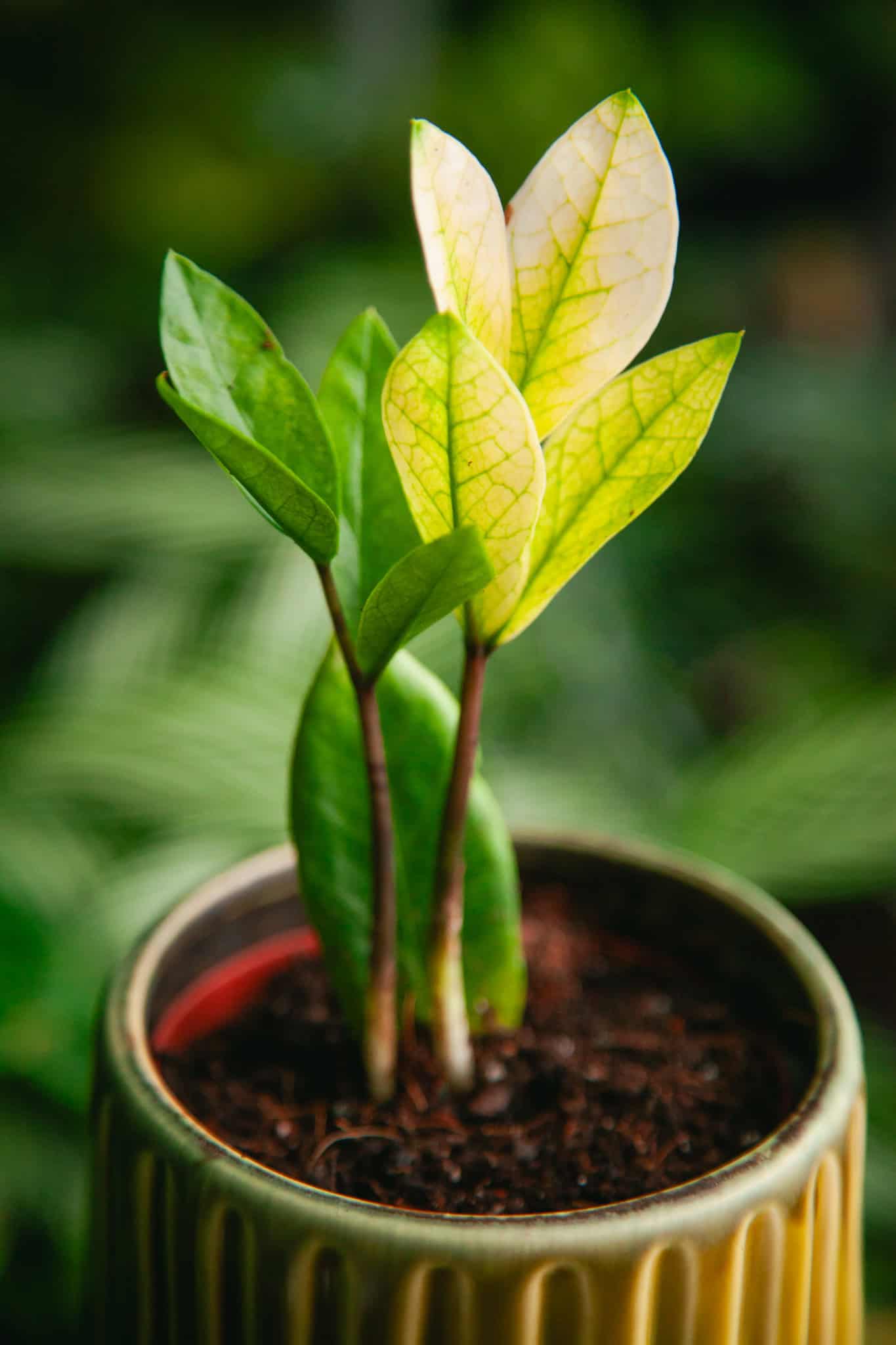 Stanowisko: Zamioculcas Chameleon preferuje niebezpośrednie światło słoneczne; ta odmiana nie nadaje się ani do półcienia ani na bezpośrednie, palące słońce.