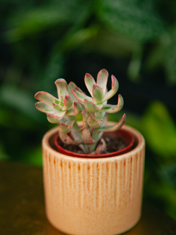 Sukulenty gromadzą wodę, więc nie potrzebują pić zbyt często. Są piękne, ale nie gwiazdorzą. Chowają się zdrowo i nie wymagają wiele zachodu. W tę szeroką kategorię wpadają bardzo różnorodne pod względem wyglądu okazy. Sukulenty to zarówno bujne rhipsalisy o grubych pędach, jak i subtelne Dischidie. Znajdują się tu także ponadczasowo modne, zahartowane do życia w różnych warunkach Sansevieria i Zamioculcas, które ze stoickim spokojem zniosą błędy początkujących hodowców. Pamiętajcie, że choć sukulenty lubią się ze słońcem, to jednak większość z nich źle się czuje ustawiona przy rozgrzanej szybie południowego parapetu. Pełne słońce może im służyć, ale gorąca tafla szkła już nie. Jeśli chcemy je postawić na bardzo słonecznym stanowisku to nie na parapecie. Można też znaleźć dla nich miejsce z dużą ilością rozproszonego światła.